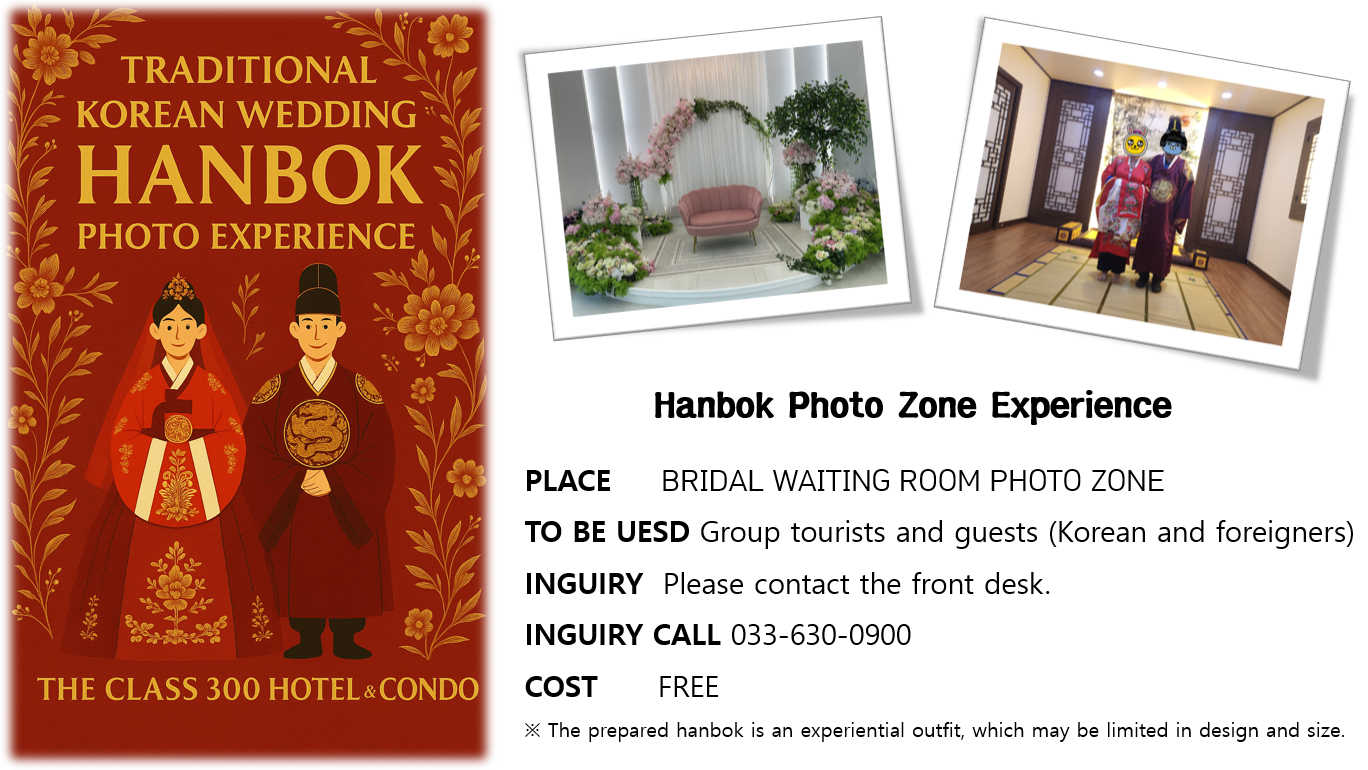 Tel. +82-33-630-9000 Fax. +82-33-630-0960E-mail. theclass300hotel@naver.com